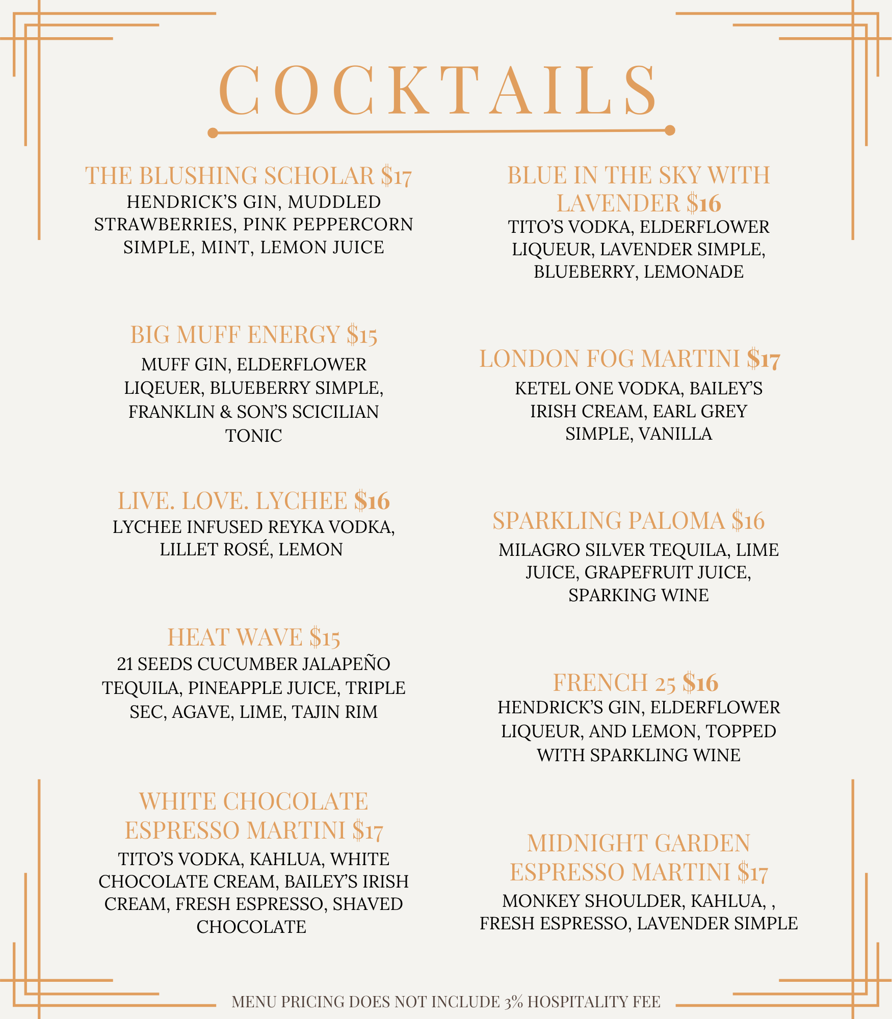 Delicious plates, along with a selection of tasty cocktails, refreshing beers and house wines, are sure to satisfy all palates and a “cheers” will render from any crowd. The lounges all boast an assortment of posh chairs, sofas and martini tables. The First Floor lounges and dining spaces inspire comfort and conversation in a chic airy environment looking out onto School Street.
